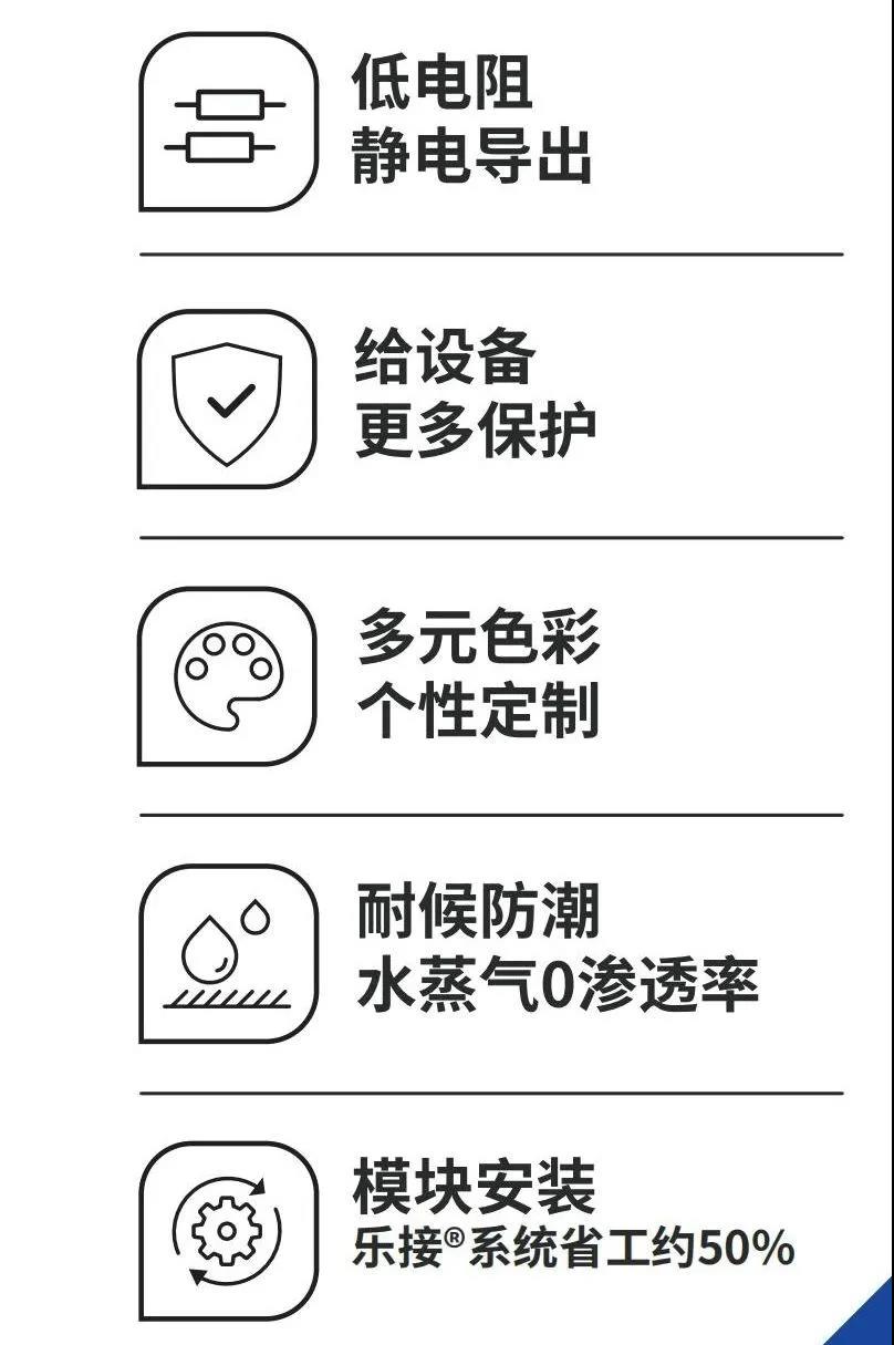 等特點。主要應用于芯片、大數據中心、精密儀器、電子、通訊機房、計算機工廠車間及鞋服等商業連鎖,主要應用的場景為內裝墻面,包括活動區、加工車間、檢測車間、試衣間等區域。