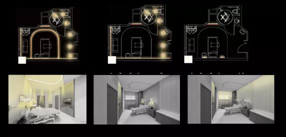 ▲ 圖48 專業(yè)化/人性化:病房的設(shè)計,從平面功能、細節(jié)設(shè)計、燈光環(huán)境等,均需要換位思考去站在患者的角度作為設(shè)計出發(fā)點。如燈光點位的布置、燈光模式的控制,需要設(shè)計聯(lián)動,與各專業(yè)進行合理的配合