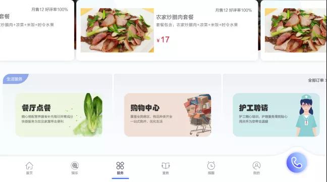 床旁終端的點(diǎn)餐界面和購(gòu)物、服務(wù)預(yù)約入口